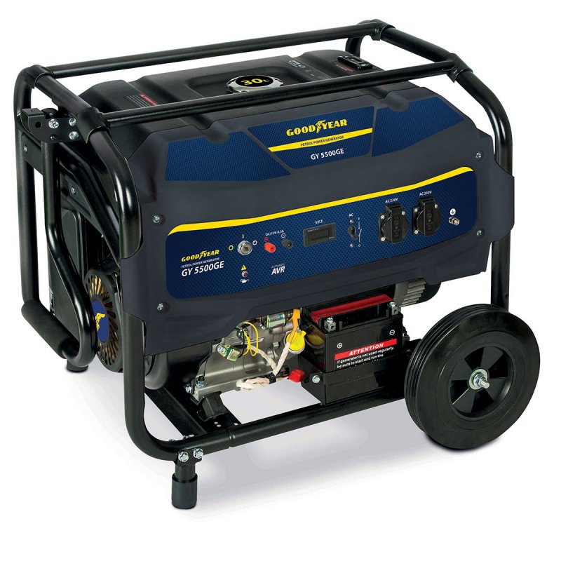 Der Benzin-Stromgenerator GOODYEAR GY5500GE bietet eine maximale Leistung von 5500 W und ist dank des AVR- Schutzes (Automatic Voltage Regulator), mit dem Sie die Spannung anpassen und einen stabilen und hochwertigen Strom liefern können, perfekt geeignet, um die Energie bereitzustellen, die Sie für die Arbeit, Ihr Freizeitcamping oder sogar für elektronische Geräte benötigen.