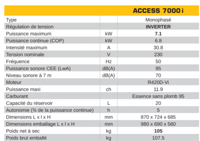 Groupe Electrogene WORMS Access 7000i 7.1kW